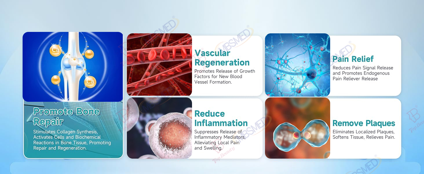 stimulieren die Gewebereparatur , chronische Entzündungen reduzieren , Und verbessern die Regeneration der Blutgefäße Im Gegensatz zu radialen Stoßwellen